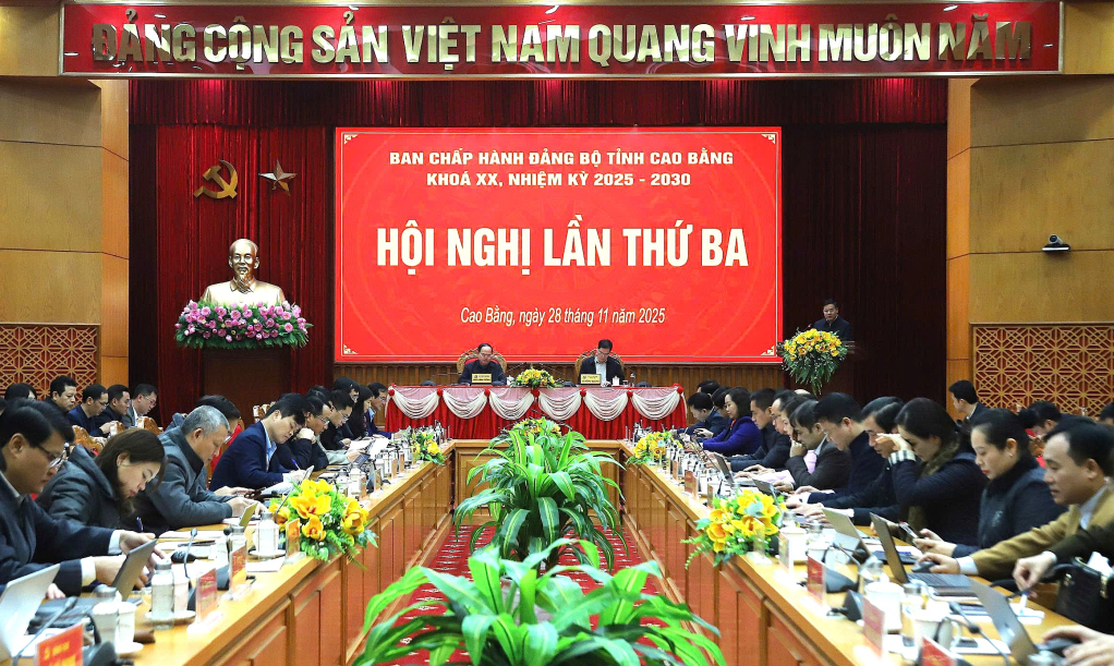 XDĐ - Ngày 28-11-2025, Tỉnh ủy Cao Bằng tổ chức Hội nghị lần thứ 3 Ban Chấp hành Đảng bộ tỉnh khóa XX, nhiệm kỳ 2025 - 2030. Hội nghị thông qua 12 chương trình, kế hoạch phát triển kinh tế - xã hội, xây dựng Đảng.