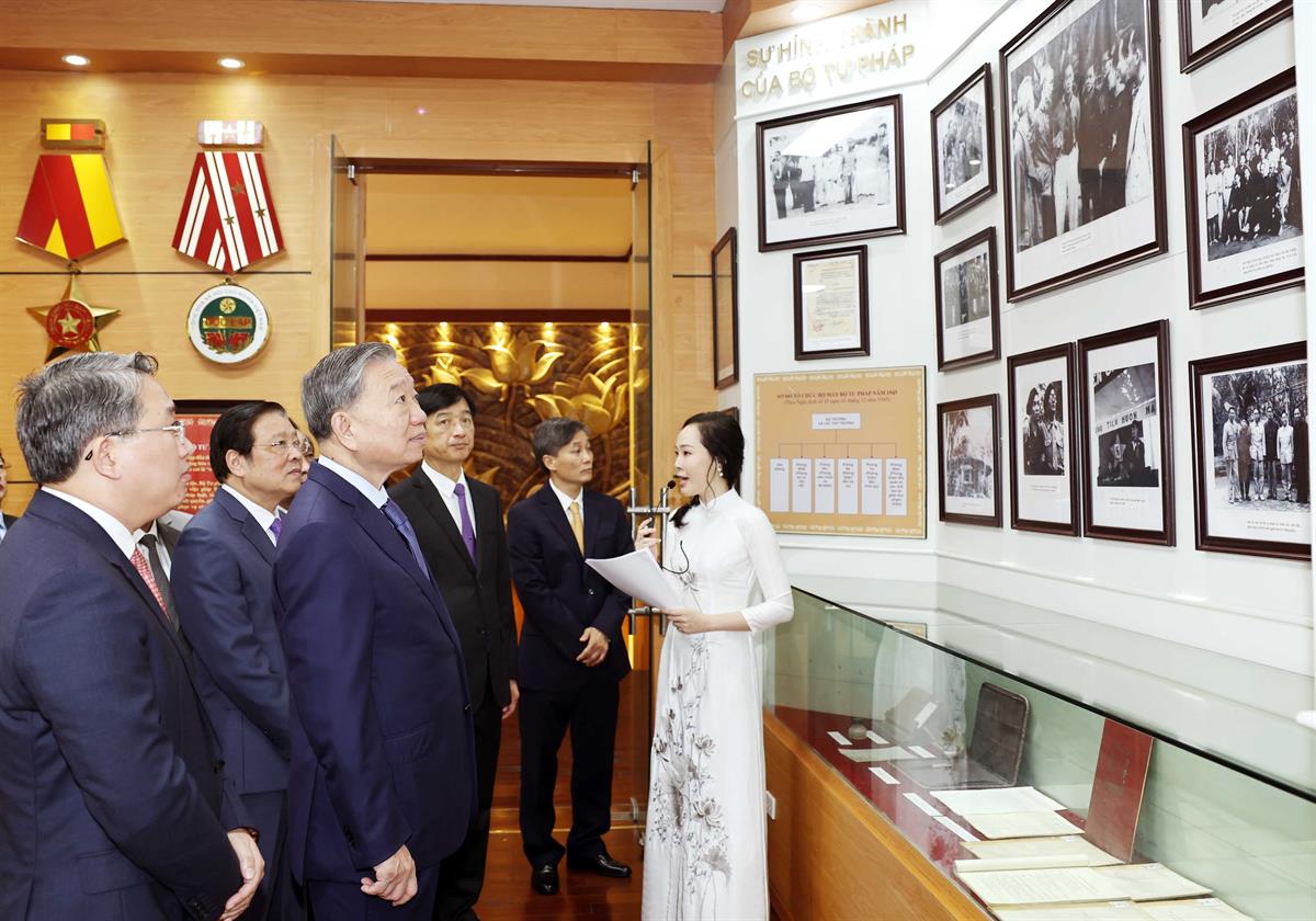 Đồng chí Tổng Bí thư Tô Lâm làm việc với Ban Cán sự đảng Bộ Tư pháp_Ảnh: TTXVN