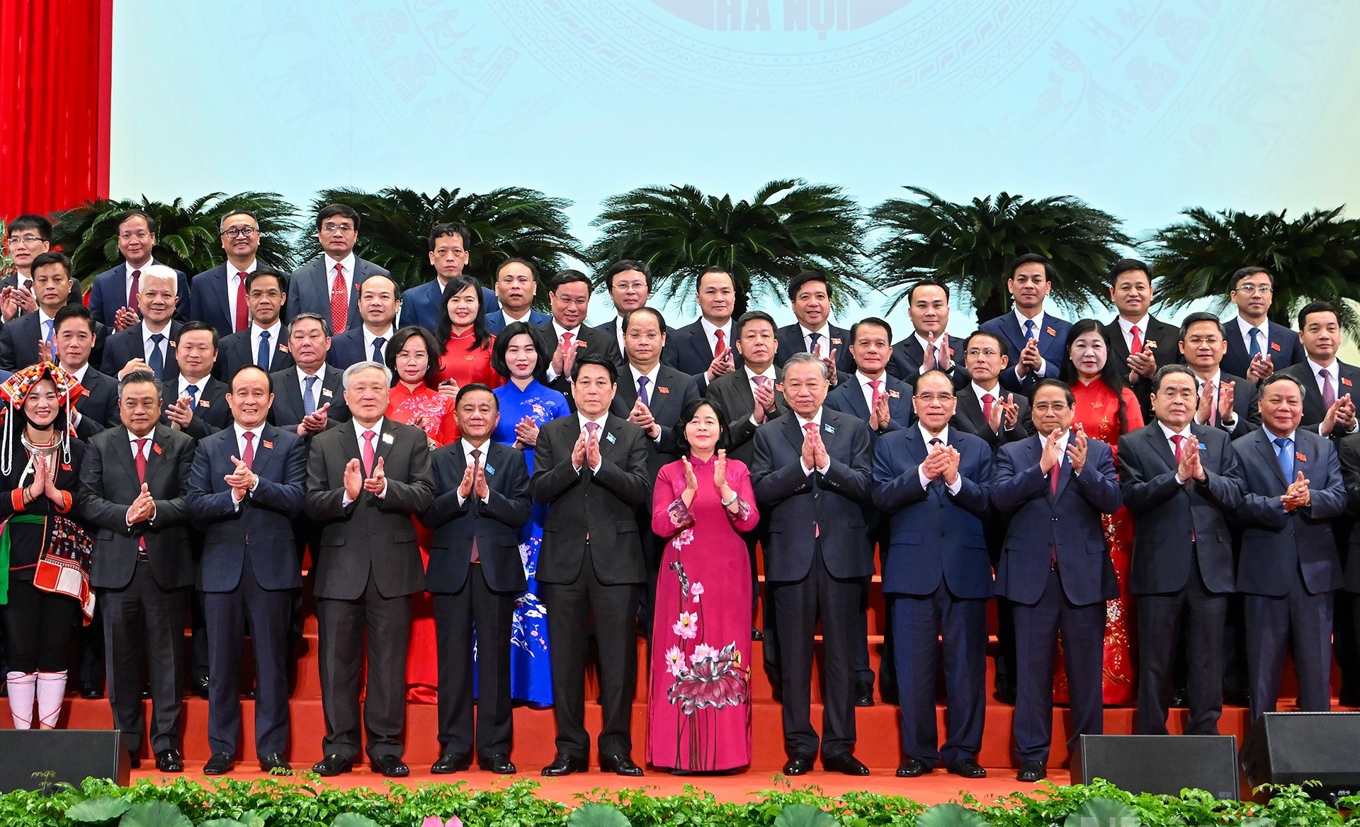 Các đồng chí lãnh đạo, nguyên lãnh đạo Đảng, Nhà nước và đại biểu tại Đại hội đại biểu Đảng bộ thành phố Hà Nội lần thứ XVIII, nhiệm kỳ 2025-2030.