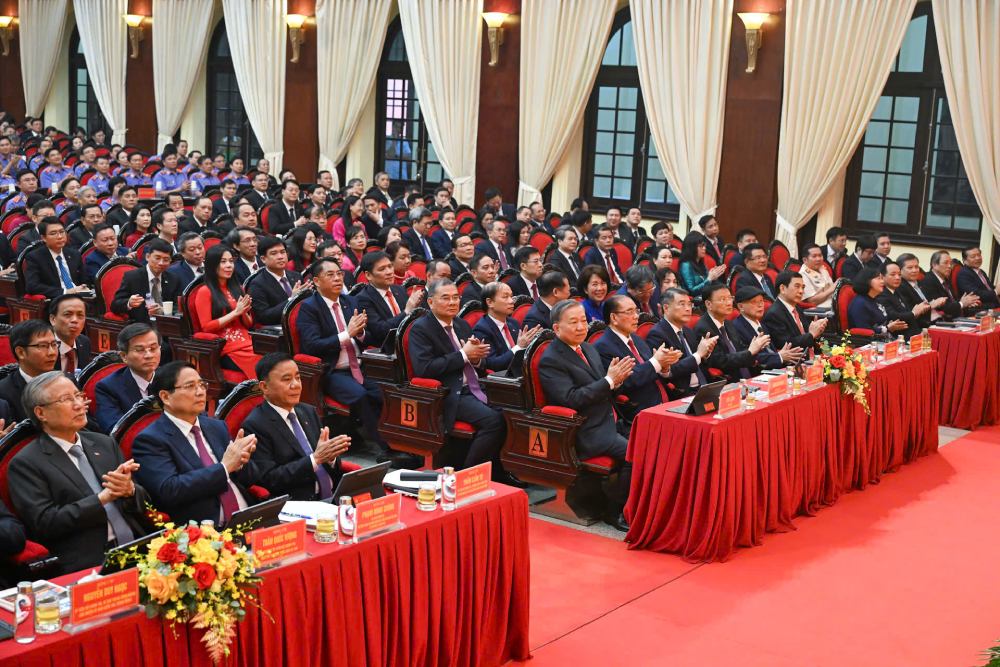 Tổng Bí thư Tô Lâm, các đồng chí lãnh đạo, nguyên lãnh đạo Đảng, Nhà nước và các đại biểu dự Đại hội